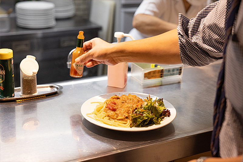 別館の社員食堂では、パスタやパン系のメニューを提供します。
